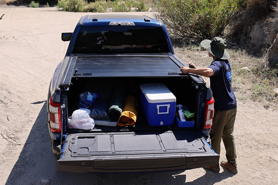 The retractable cover can be stopped at any position and locked at the tailgate, allowing easy access to your cargo and the ability to haul large items without fully removing the cover.