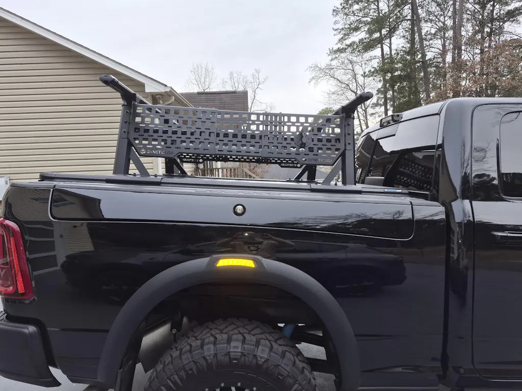 The SYNETICUSA R1S Ladder Rack is built from superior aluminum with a matte black powder‑coat finish for long‑lasting corrosion resistance and a clean, professional look. It uses a simple bolt‑on design that is easy to install and intuitive to use, so truck owners can get working or traveling with minimal setup time.